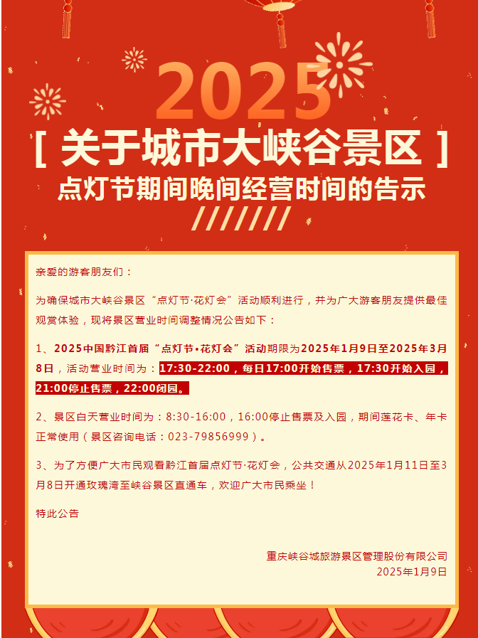 • 2025/01/08明日亮燈!2025黔江點燈節倒計時1天..